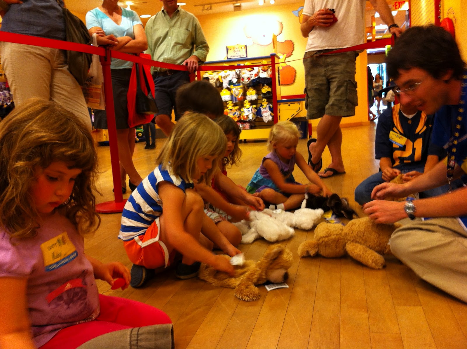 Ruby's best friend Clara turned 4! Her party was Ruby's first time at Build a Bear. Guess what animal she picked? Of course, a cat! She was thrilled they had one. She asked, "Mommy, will I have to give this cat back when we're done with the party or can I take it home?" And she danced when I told her she could keep it.
